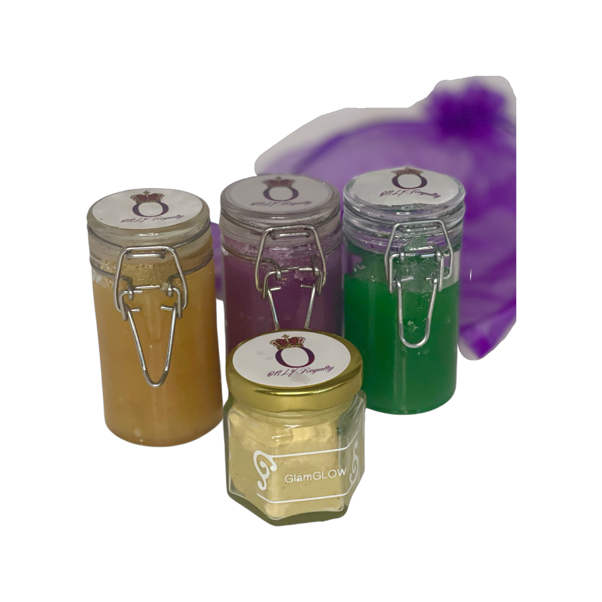 ALL 3x- 2oz BodyScrubs paired with a 1oz GlamGLOW perfect for you to taste and indulge into the royalty!